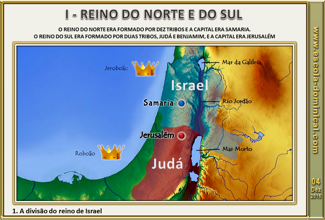 Fato marcante na história de Israel narrado no Antigo Testamento foi a divisão da nação dos hebreus em dois reinos: o Reino do Sul (Judá), com duas tribos, m.