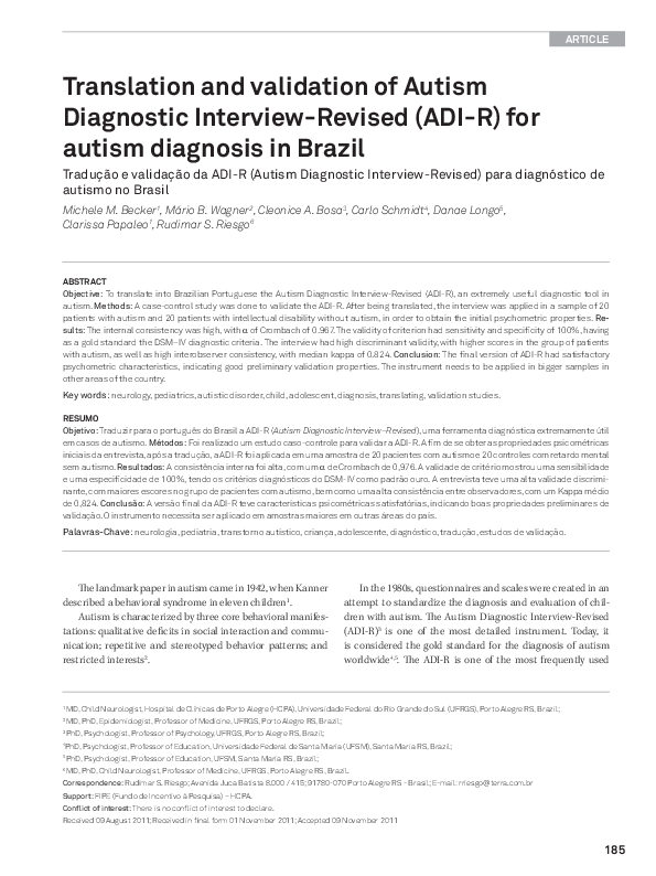 (PDF) Translation and validation of Autism Diagnostic InterviewRevised (ADIR) for autism