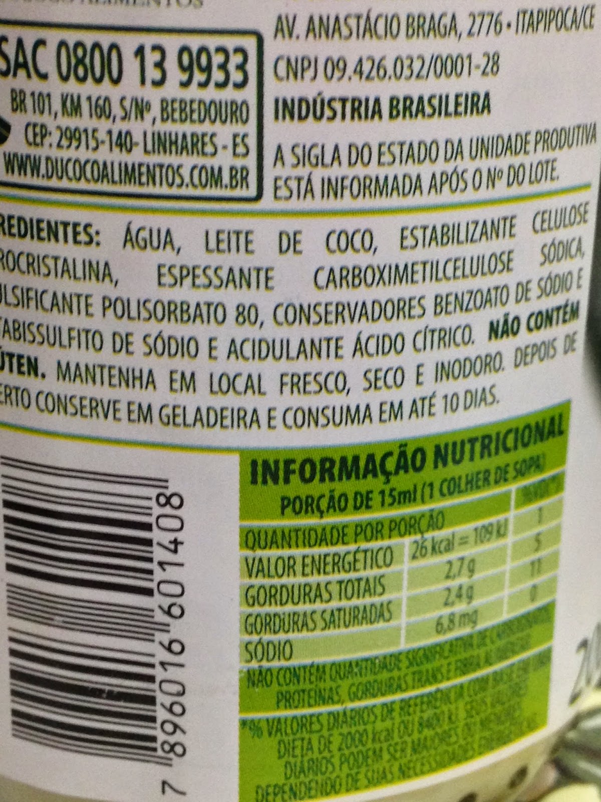 Nutrição Funcional Novidade no mercado Leite de coco (sem aditivo) e opções de Creme de "Leite