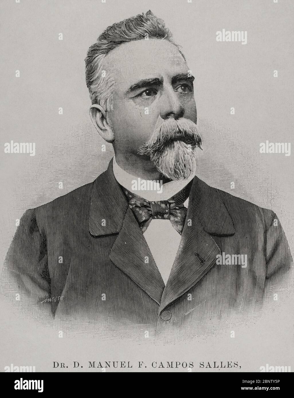 Manoel Ferraz de Campos Salles ( Campinas, 15 de fevereiro de 1841 - Santos, 28 de junho de 1913) foi um advogado e político brasileiro, quarto presidente do estado de São Paulo, de 1896 a 1897 e o quarto presidente da República, entre 1898 e 1902. Factos rápidos 4.º Presidente do Brasil, Senador por São Paulo. Fechar.