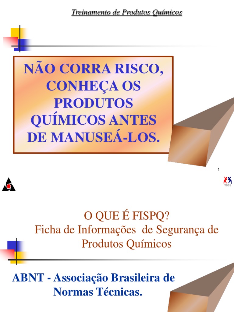 O que é FISPQ (Ficha de Segurança de Produtos Químicos) O que é? A sigla FISPQ significa Ficha de Informação de Segurança de Produtos Químicos, é um documento normalizado pela Associação Brasileira de Normas Técnicas (ABNT) conforme NBR 14725-4. Produtos químicos. Em nosso ambiente cotidiano seja em casa ou no trabalho, sempre temos algum tipo de contato com produtos químicos.