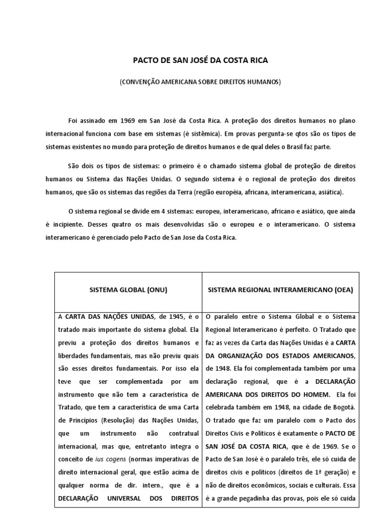ENTENDEU DIREITO OU QUER QUE DESENHE ??? Pacto de San Jose da Costa Rica Direitos Humanos