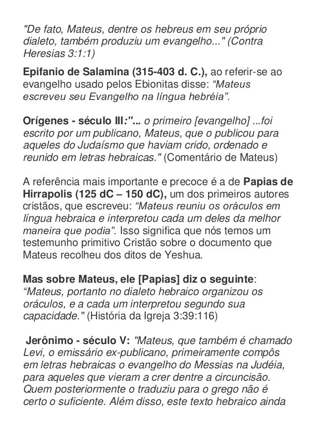 Estudo do Evangelho Segundo Mateus. Por Diego Nascimento. Em Bíblia de Estudo Online. O estudo do livro de Mateus oferece uma visão profunda e enriquecedora sobre a vida, os ensinamentos e o ministério de Jesus Cristo. Este livro é o primeiro dos quatro Evangelhos do Novo Testamento da Bíblia cristã e desempenha um papel crucial na.