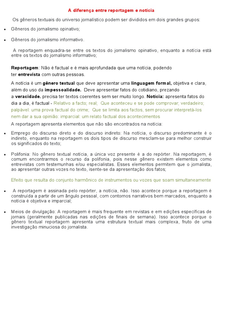 Diferença Entre Reportagem E Noticia Exemplos Novo Exemplo
