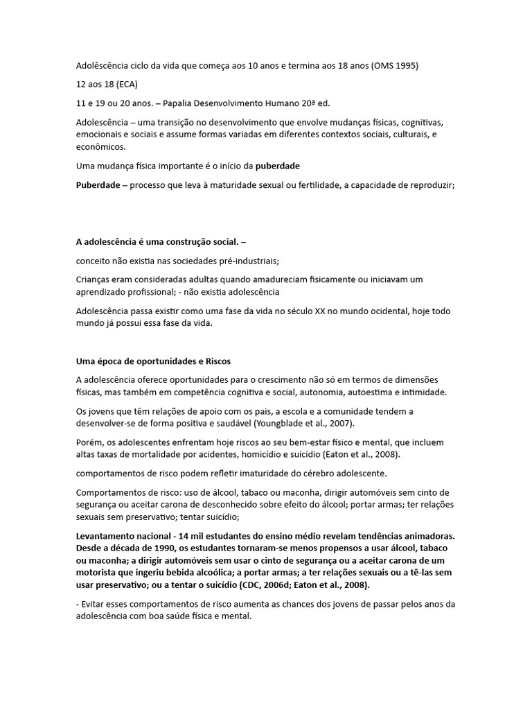 Adolêscência Ciclo Da Vida Que Começa Aos 10 Anos e Termina Aos 18 Anos PDF Adolescência