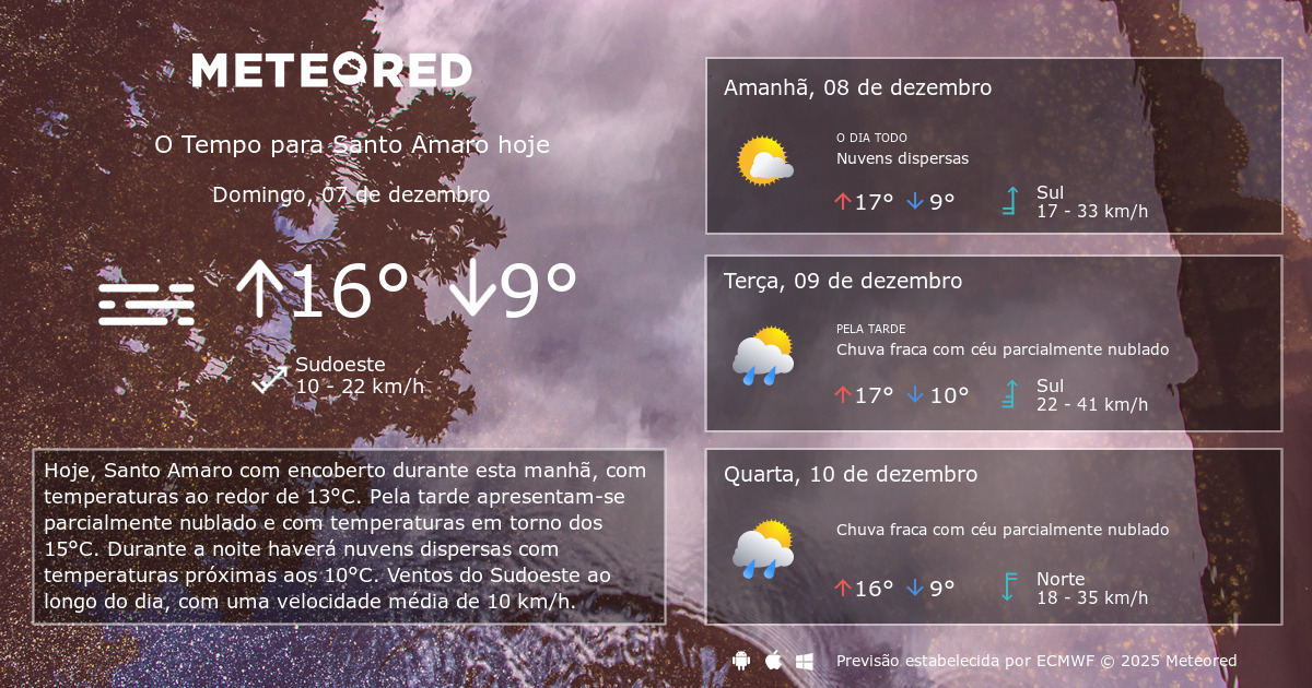 Tempo em Santo Amaro. Previsão para 14 dias tempo.pt Meteored